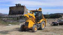 Retroexcavadoras equipadas con diferentes cazos y martillos.